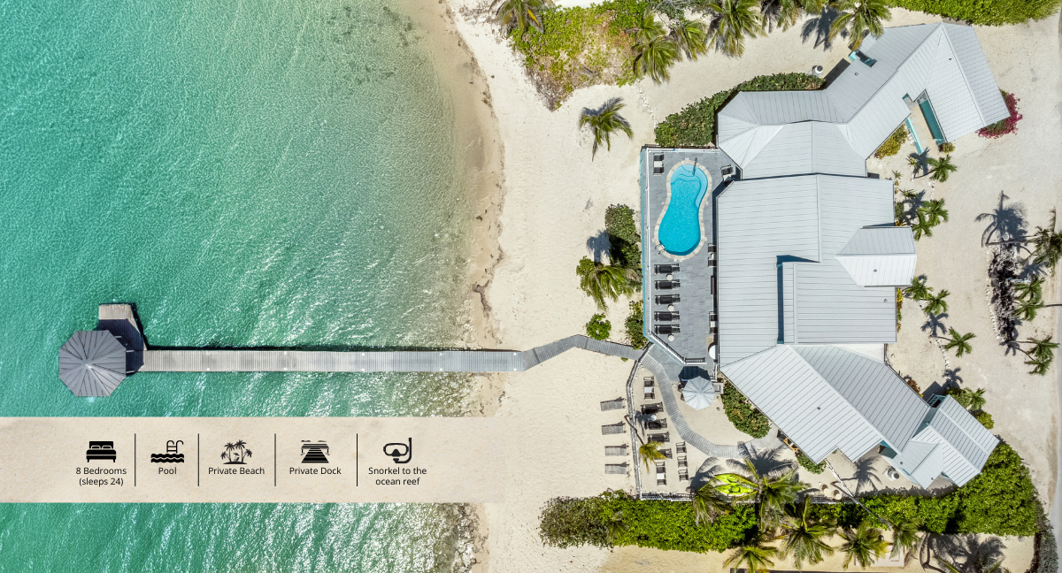 Far Tortuga is a recently renovated 8-bed, 7.5-bath luxury beachfront villa located on the quiet Rum Point/North Side of Grand Cayman. The beach is protected by a living reef 200 feet offshore for wonderful snorkeling and kayaking experiences off the private dock.